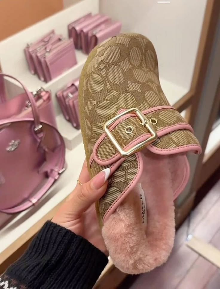 The CCH Pink Jacquard Clog is crafted of Signature Jacquard and cozy faux fur, perfect for keeping your feet warm and comfortable. With a durable rubber outsole, these fuzzy clogs are designed to take you from running errands to a casual coffee date in style.
