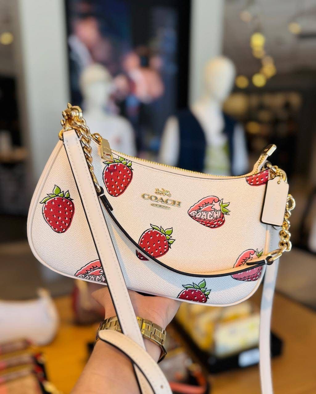 It’s giving summer picnic in Paris meets your new everyday essential. This bag turns every outfit into a moment—with playful strawberry prints that pop against creamy leather and just enough room for your daily must-haves.
