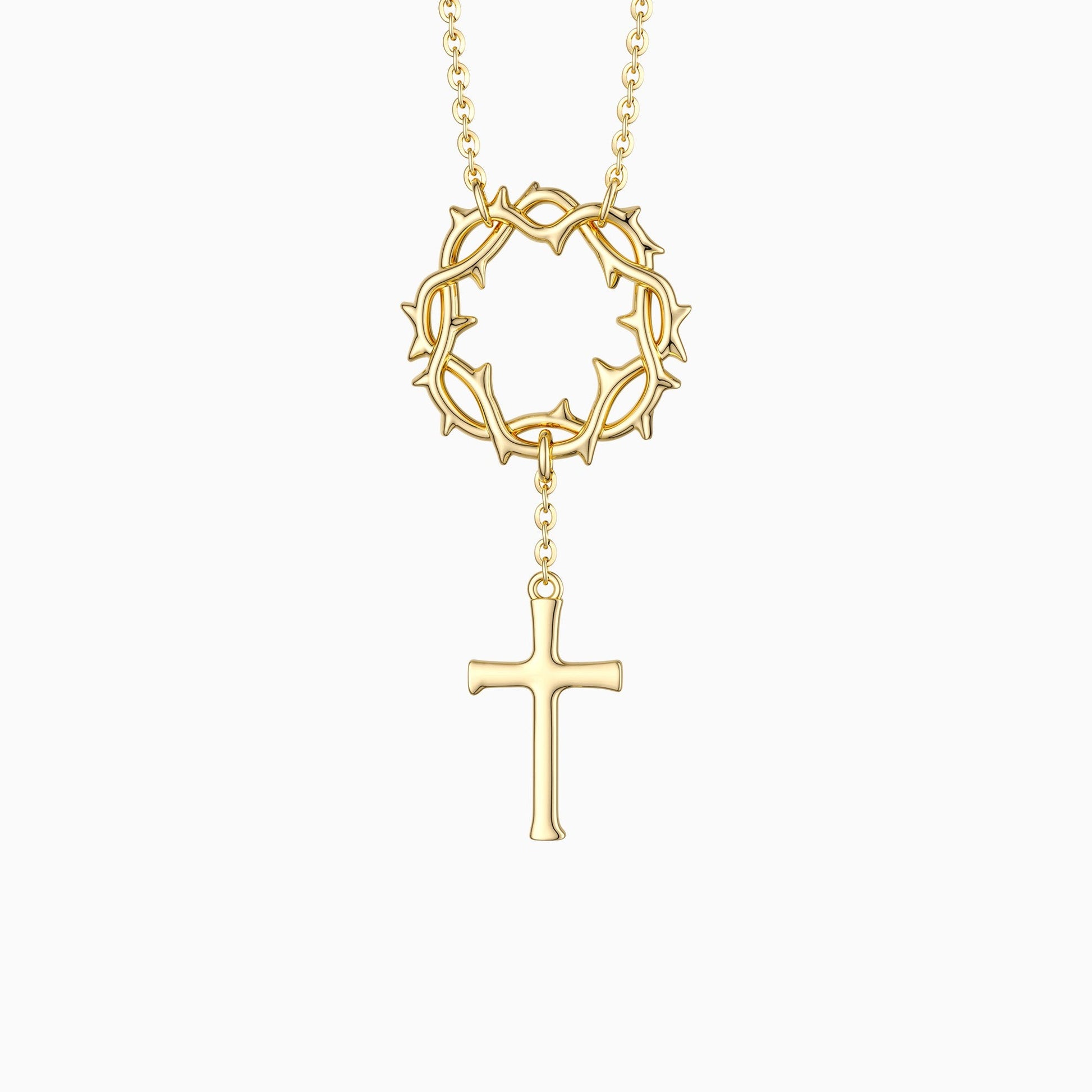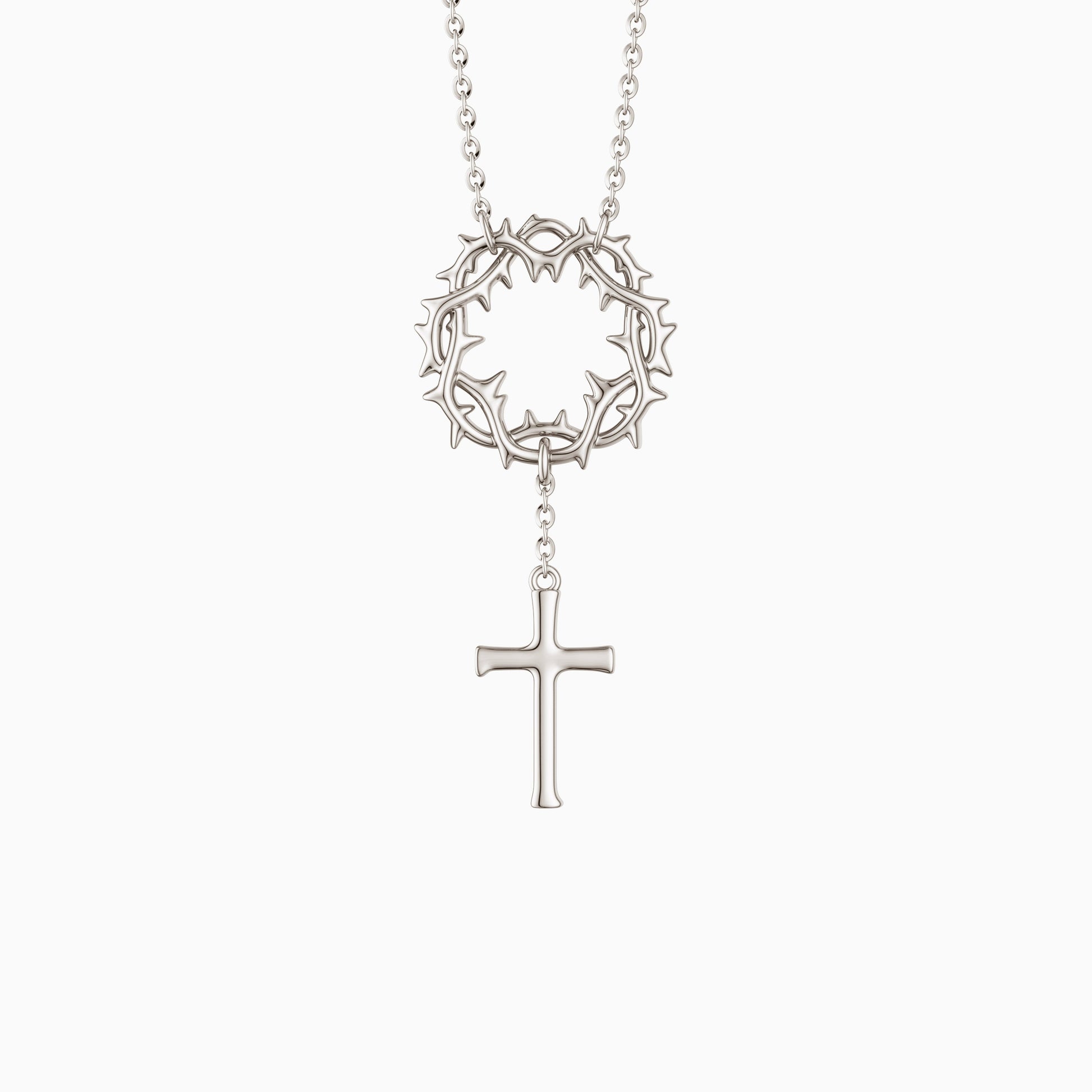 - Pendant Design: A detailed crown of thorns forming a circle, with a classic crucifix suspended from its bottom.