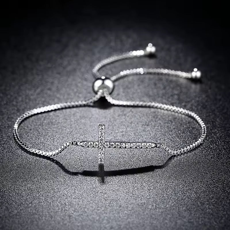 The “Faith Over Fear” Adjustable Cross Bracelet is a sparkling symbol of strength, peace, and unwavering belief. With its minimalist silver finish and crystal-encrusted cross centerpiece, this bracelet is more than a fashion piece—it’s a wearable declaration of trust in God’s promises.