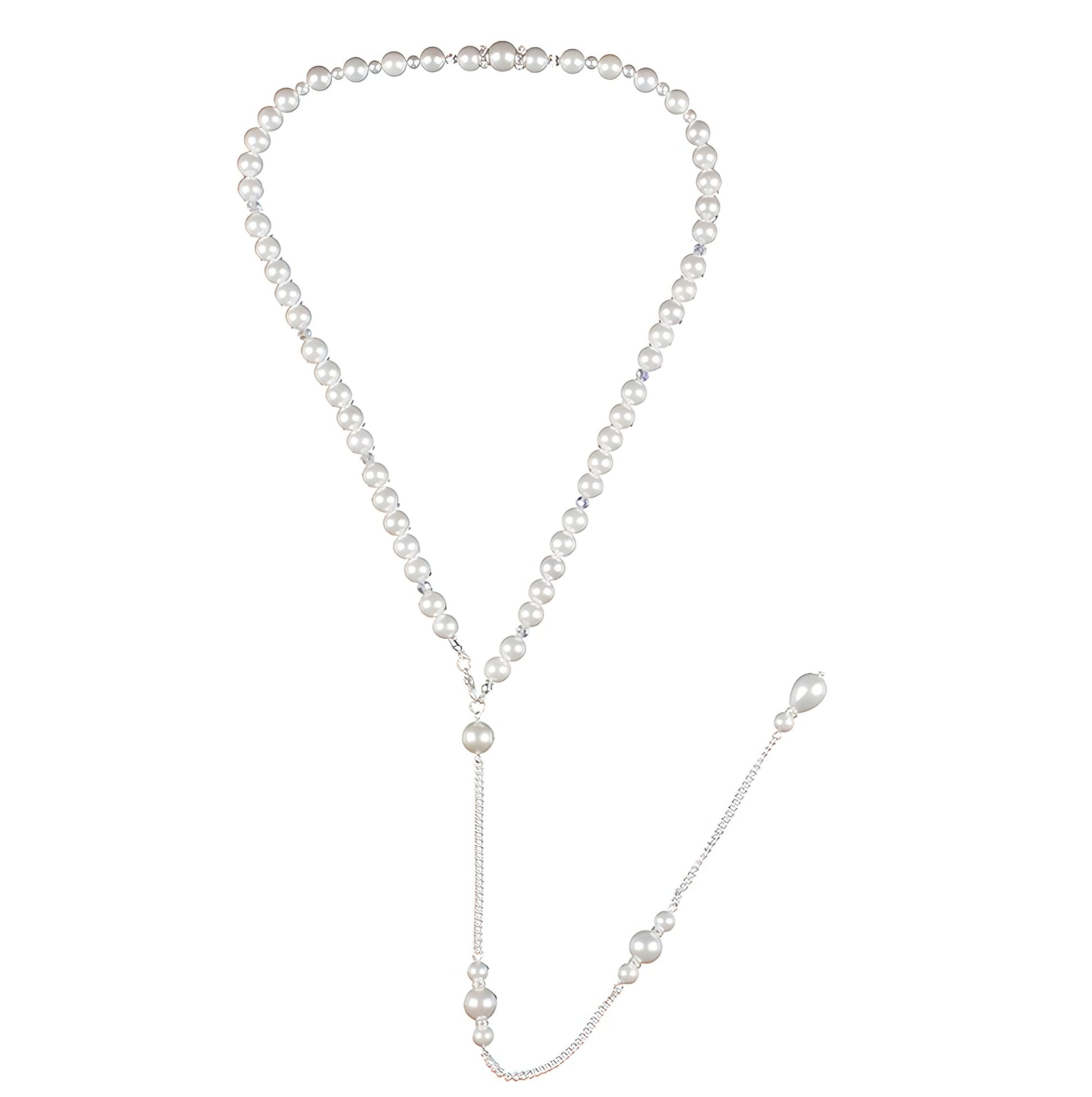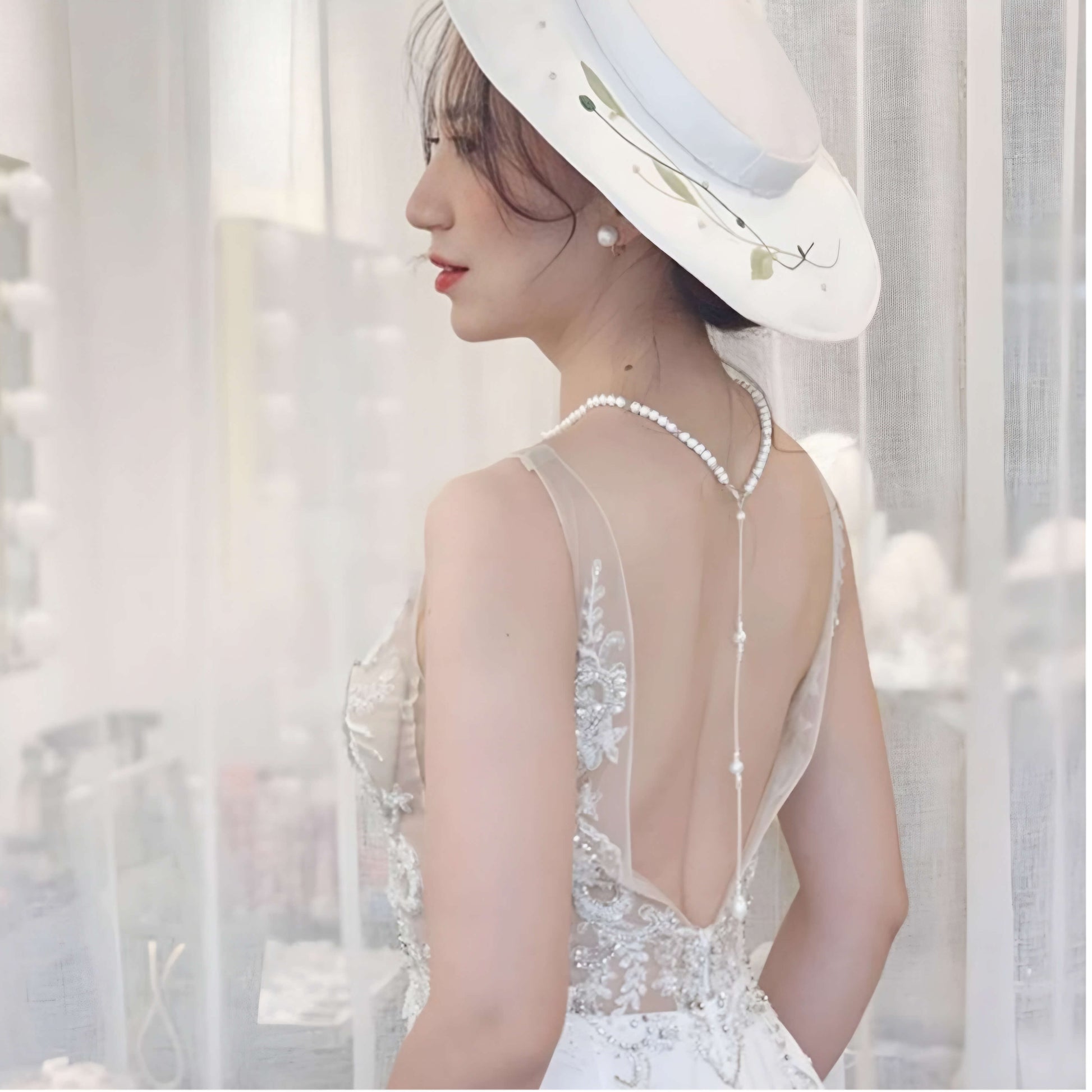 Delicate yet unforgettable, the Pearl Backdrop Necklace speaks softly but leaves a lasting impression. From the front, it exudes timeless grace with its elegant pearls, but turn around, and a waterfall of pearls trails down your back, adding a seductive surprise. It’s the kind of piece that makes you feel both sophisticated and daring.